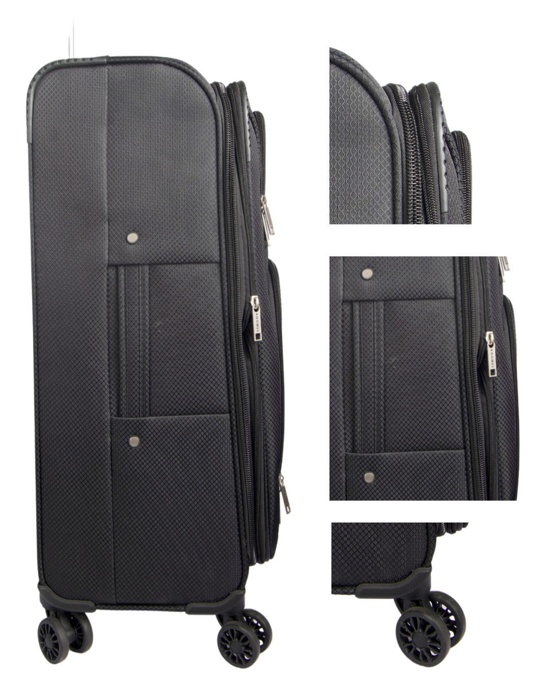 Both the check-in and carry-on are outfitted with a luxurious unbreakable softside fabric, ultra-sturdy telescopic handle, whisper-quiet wheels, and all-premium materials. When you’re not traveling, the Carry-On suitcase nests inside any of our Check-In sizes for easy storage.